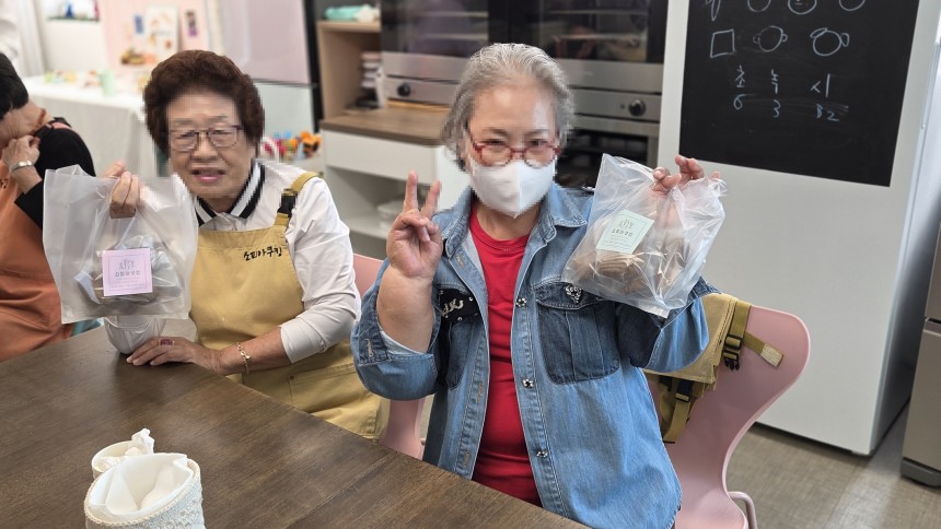 오븐에서 쿠키가 구워지기 시작하자 공방 안에는 고소한 향이 가득 퍼졌고, 어르신들의 기대감도 함께 부풀었습니다.