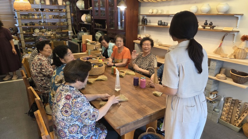 어르신들과 함께 만든 작품은 바로 모시빗자루였습니다.